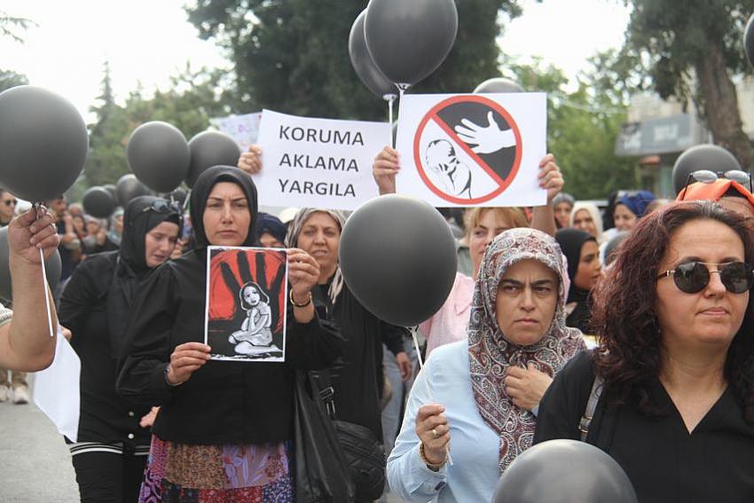 Kadınlar, “Çocukları korumak, insanlığı korumaktır”, “İstismar aklanamaz bir suçtur”, “Çocuklar susar, sen susma” gibi sloganların yer aldığı dövizler taşıdı. Ellerinde siyah balonlarla yürüyen kalabalığa vatandaşlar da alkış ve araç kornalarıyla destek verdi.