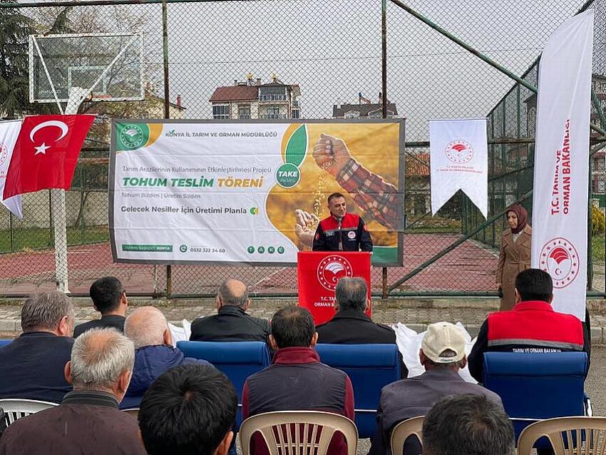 BEYŞEHİR - Beyşehir’de, Tarım ve Orman Bakanlığı Bitkisel Üretim Genel Müdürlüğü tarafından yürütülen “Tarım Arazilerinin Kullanımının Etkinleştirilmesi Projesi” kapsamında hazırlanan “Bereketli Topraklar İçin Kırmızı Mercimek” projesi doğrultusunda kırmızı mercimek tohum teslim töreni gerçekleştirildi.