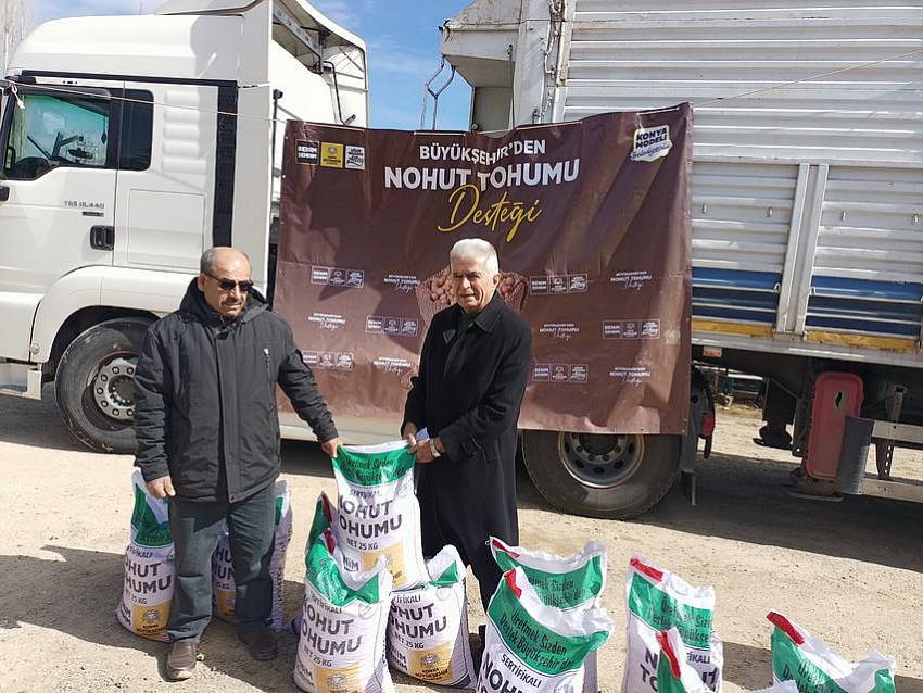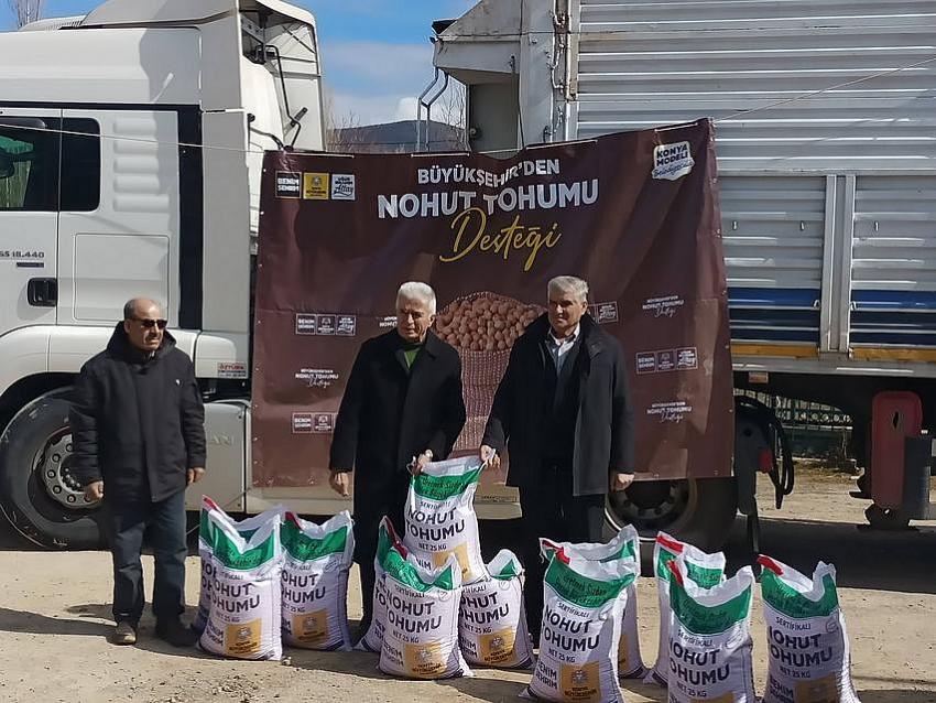 HÜYÜK - Konya Büyükşehir Belediyesi Tarımsal Hizmetler Daire Başkanlığı tarafından yürütülen Tarımsal Desteklemeler kapsamında üreticilere sağlanan sertifikalı nohut tohumu dağıtımını gerçekleştirdi.