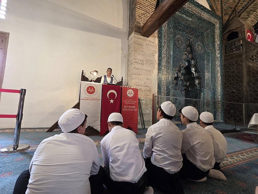 BEYŞEHİR - Beyşehir Müftülüğü tarafından organize edilen “Kur’an-ı Kerim’i Güzel Okuma Yarışması ve Kur’an Ziyafeti” programı, 9 Ağustos Cuma günü tarihi Eşrefoğlu Camii'nde yoğun katılımla gerçekleştirildi.