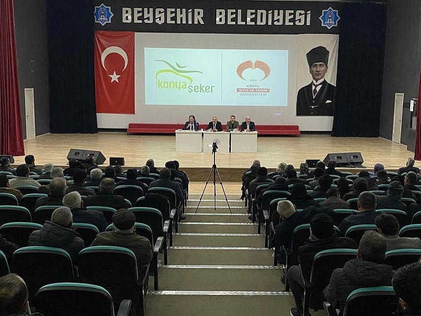 BEYŞEHİR - KGTÜ ve Konya Şeker İş Birliğiyle Beyşehir’de Çiftçi Buluşması Gerçekleştirildi Konya Gıda ve Tarım Üniversitesi (KGTÜ) ile Konya Şeker A.Ş. iş birliğinde Beyşehir ilçesinde düzenlenen Çiftçi Buluşması, bölgedeki üreticilerin yoğun katılımıyla gerçekleştirildi. Program, tarımsal üretimde verimliliğin artırılması, sürdürülebilir tarım uygulamalarının yaygınlaştırılması ve çiftçilerin güncel bilimsel ve teknolojik gelişmeler hakkında bilgilendirilmesi amacıyla düzenlendi.